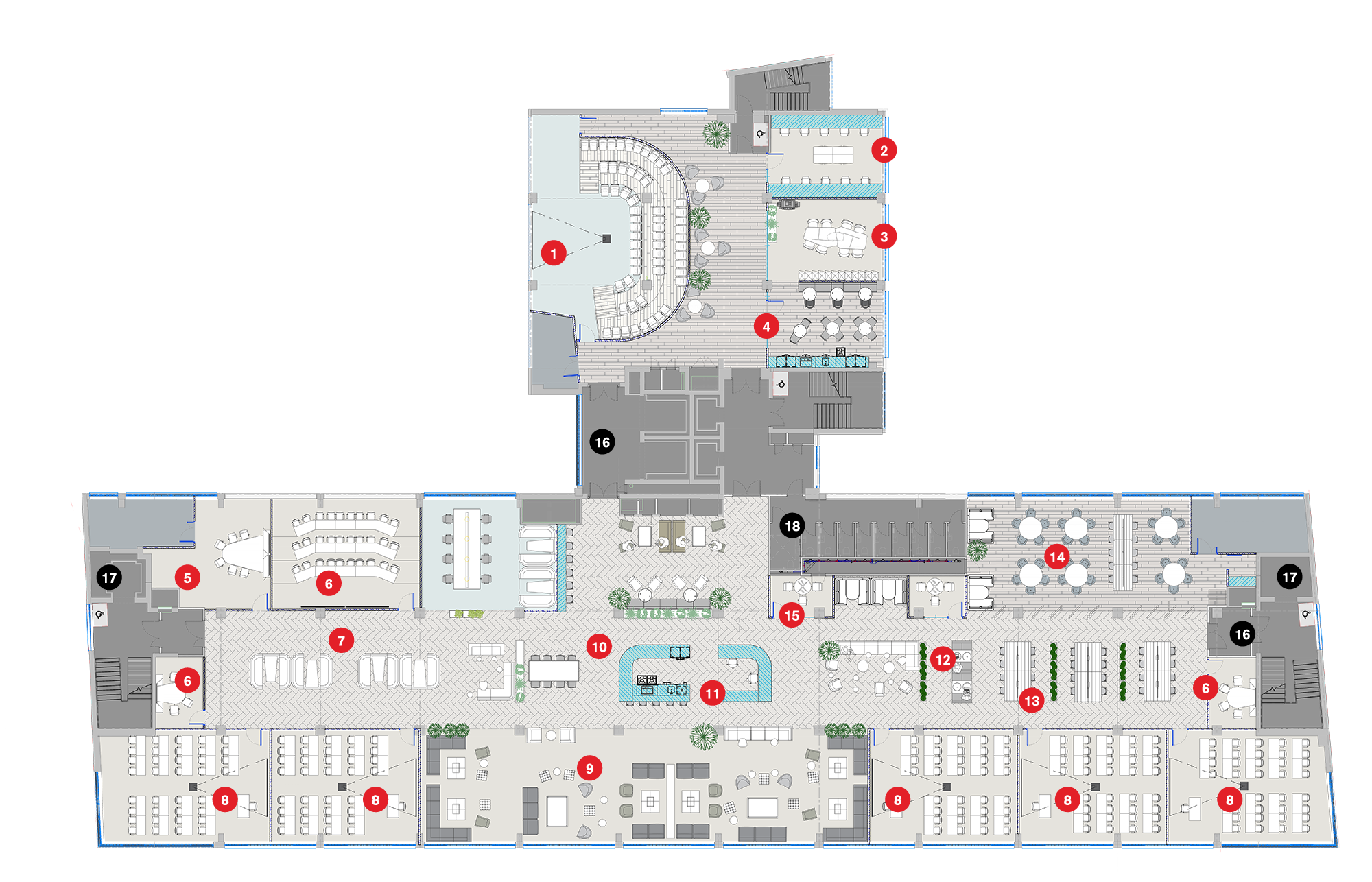 The floorplates can be fitted out to deliver a variety of cutting edge contemporary learning environments. Equally, they are capable of accommodating a high density of students and faculty workers.